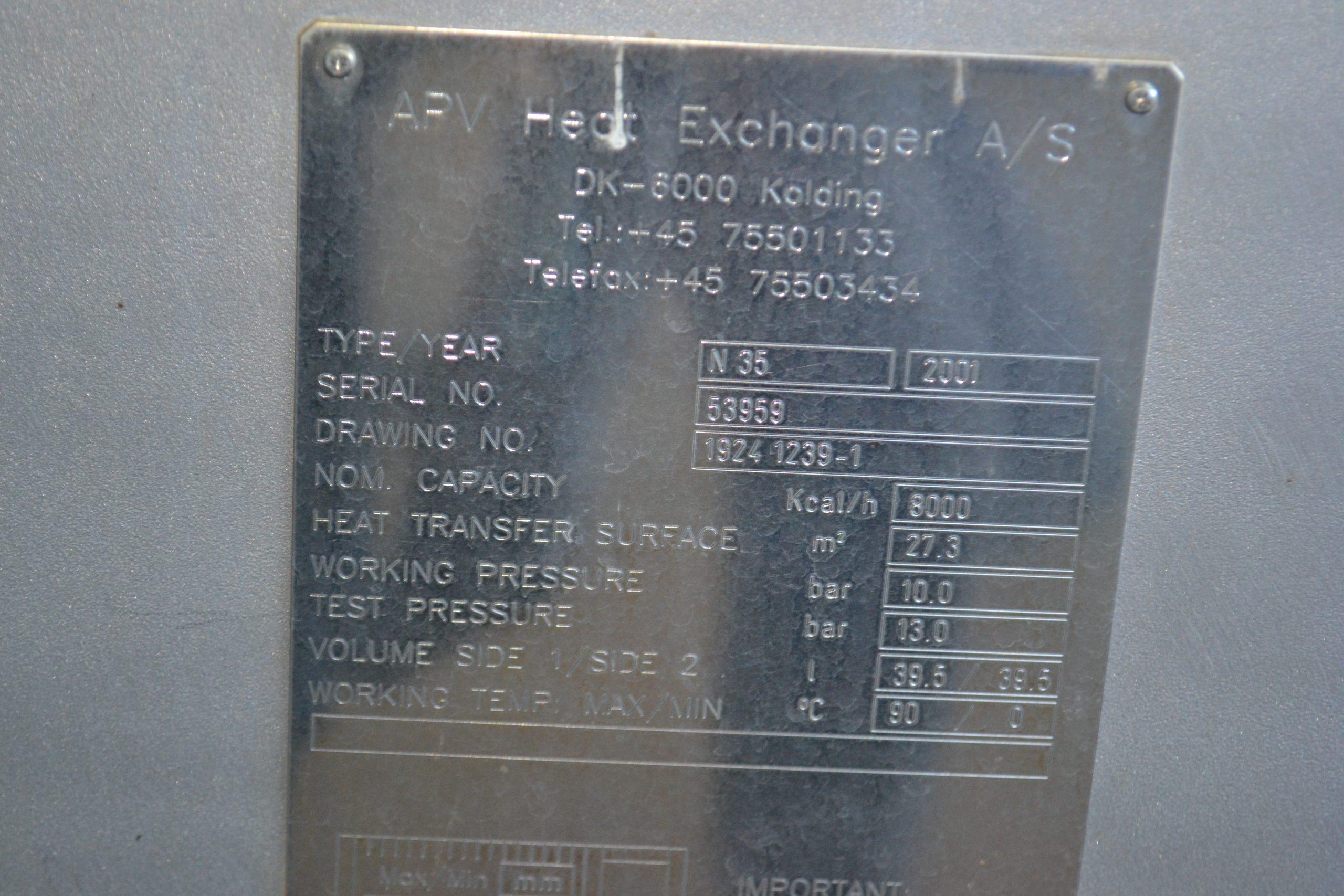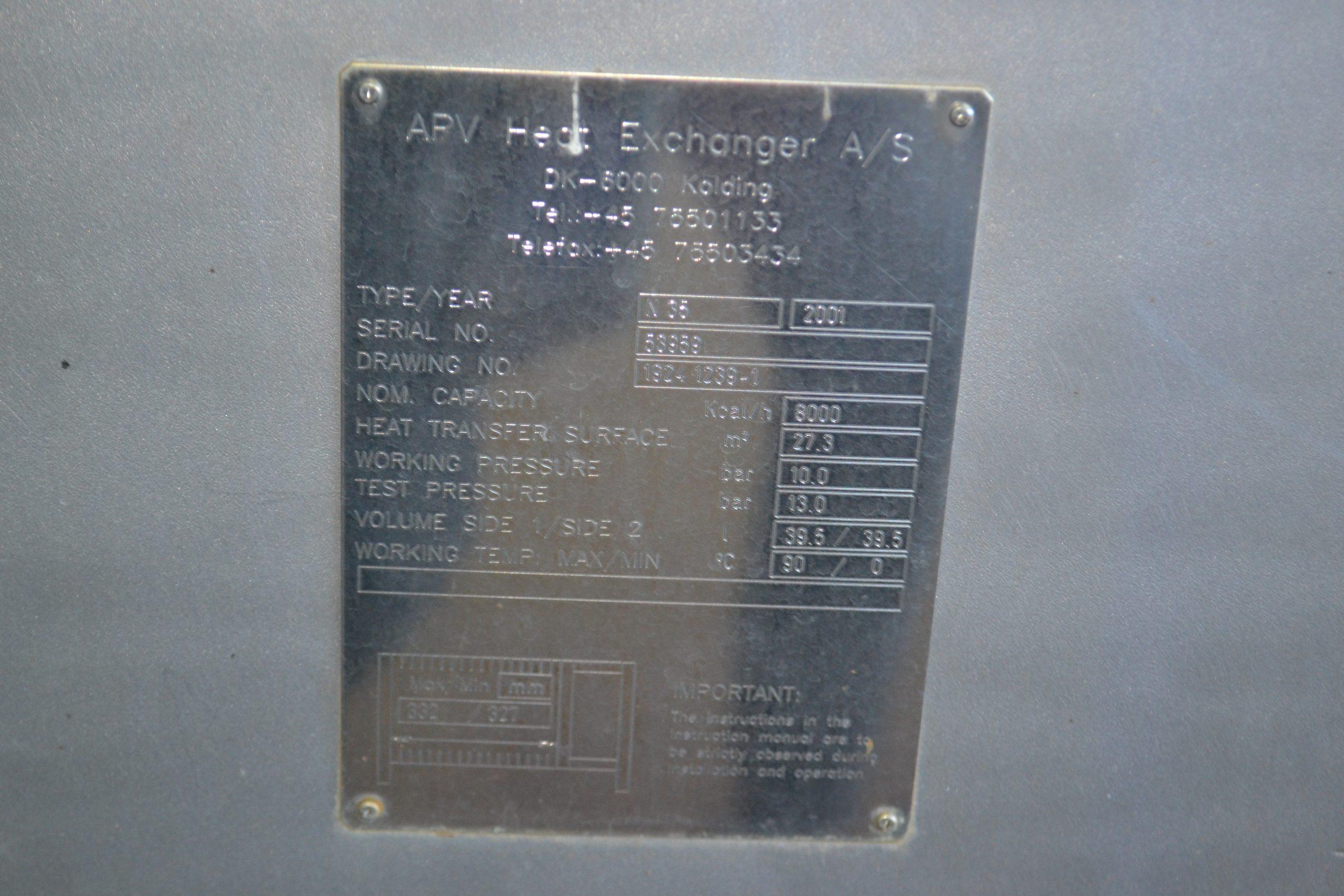 Échangeur à plaque et joints de marque APV modèle N35 année 2001 numéro de série 53959