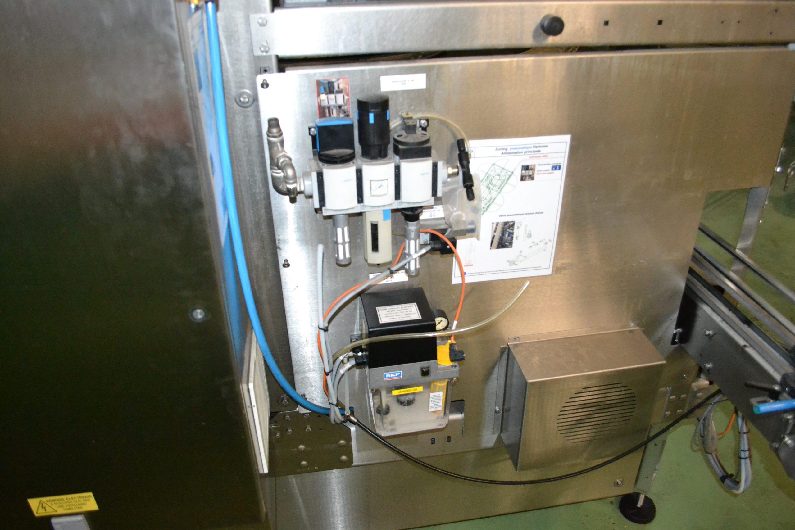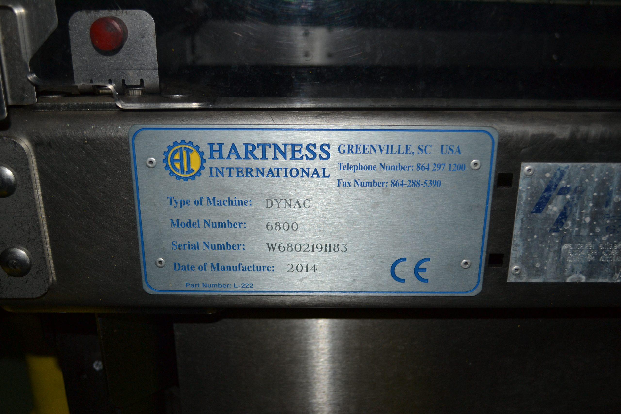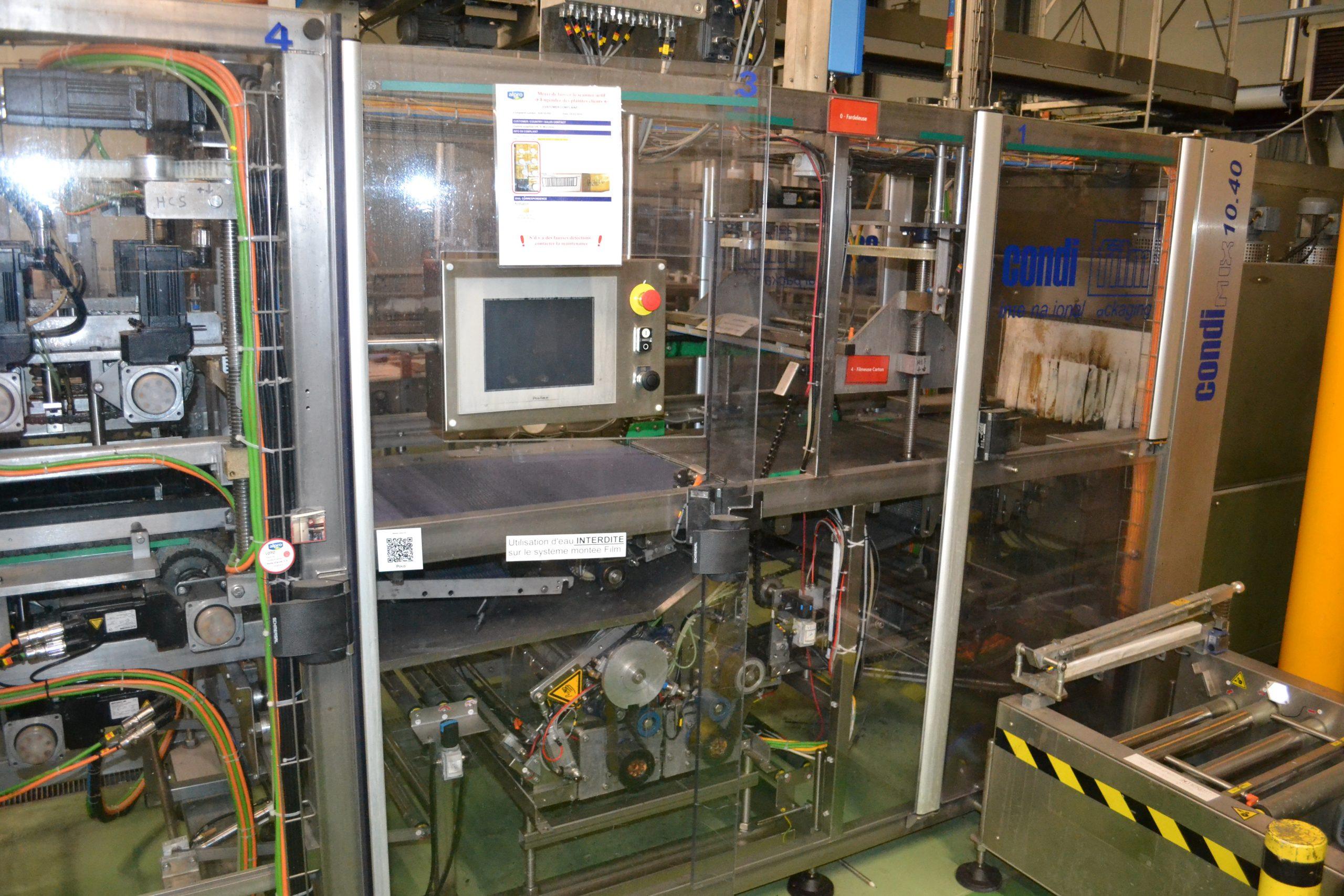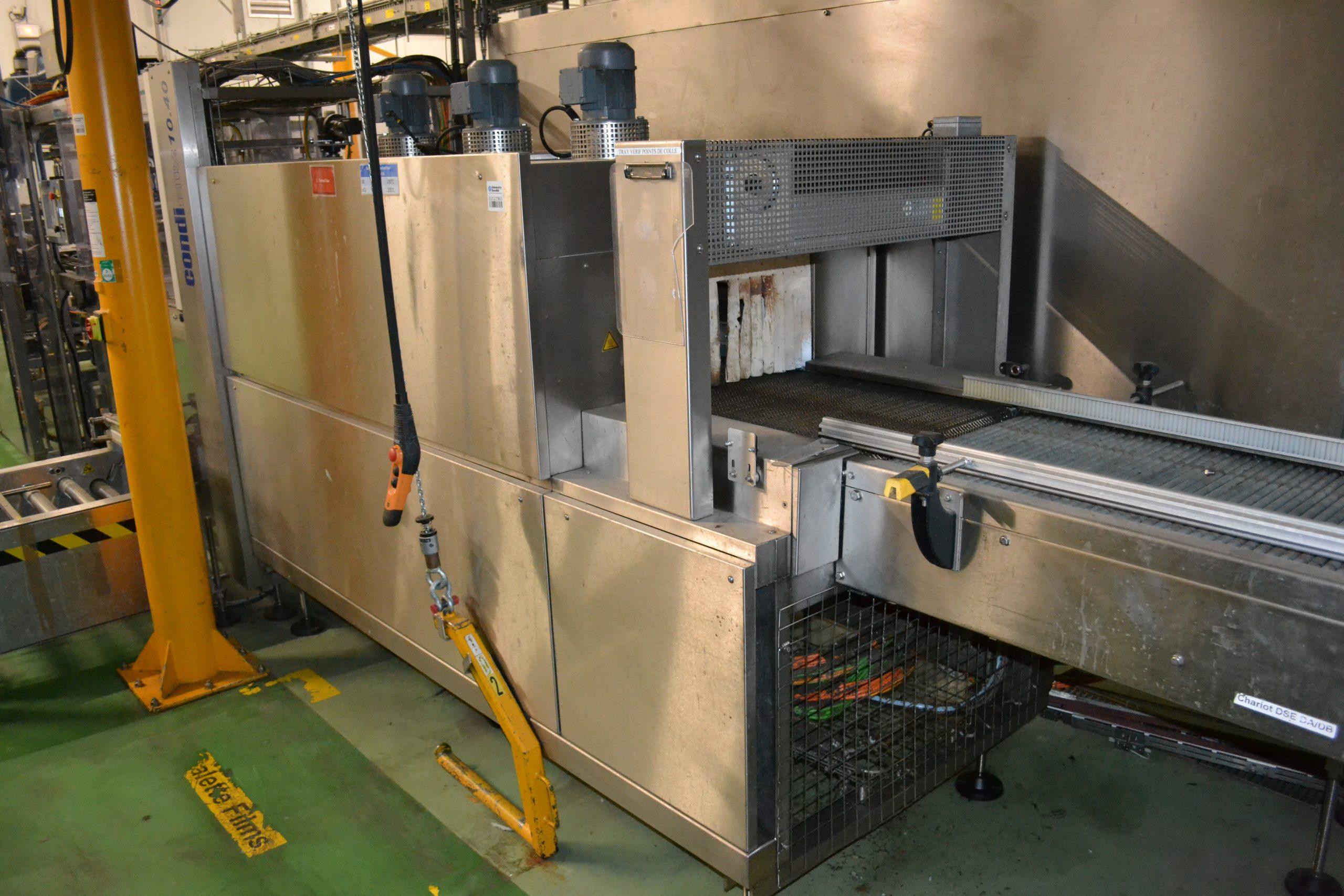Ligne de production (2014) d'une capacité de 8000 unités / h composée d'un accumulateur de la marque HARTNESS international modèle DYNAC 6800 année 2014 N° de série W680219H83 et d'une barquetteuse CONDIFILM et d'une filmeuse CONDIFILM condimix 10,40